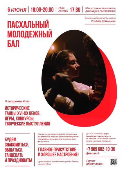6 июня в школе имени св. Димитрия Ростовского храма Успения Пресвятой Богородицы с. Демьяново состоится Пасхальный молодежный бал Подробнее