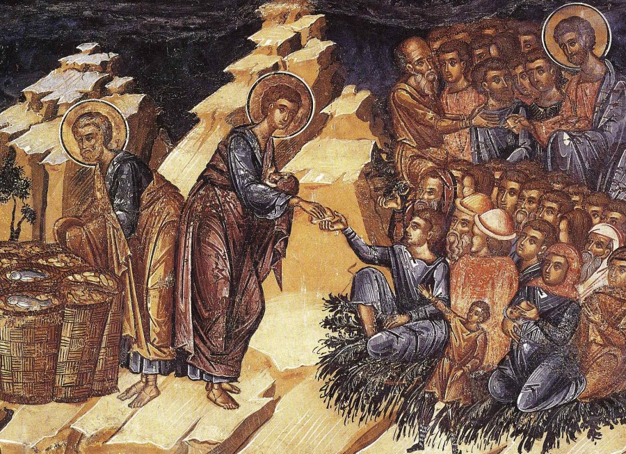 Христос удаляется в пустынное место и весь день объясняет собравшимся: какой Он – Бог, что Он хочет от людей, и что нам нужно делать для того, чтобы жизнь была настоящей, полноценной и вечной. Целый день многотысячная толпа внимает словам Христа. Но вот уже приближается вечер, и Господь понимает, что до дома людям идти далеко, а они уже устали и проголодались. Наверное, они просто не думали, что пробудут здесь допоздна, но не расходились, так как осознавали, насколько важны для них слова Христа. На первое место в этот день они поставили главное – слышание слова Бога. Поскольку они напитали свои души словом Божиим, Сам Господь заботится о том, чтобы подкрепить их телесные силы.