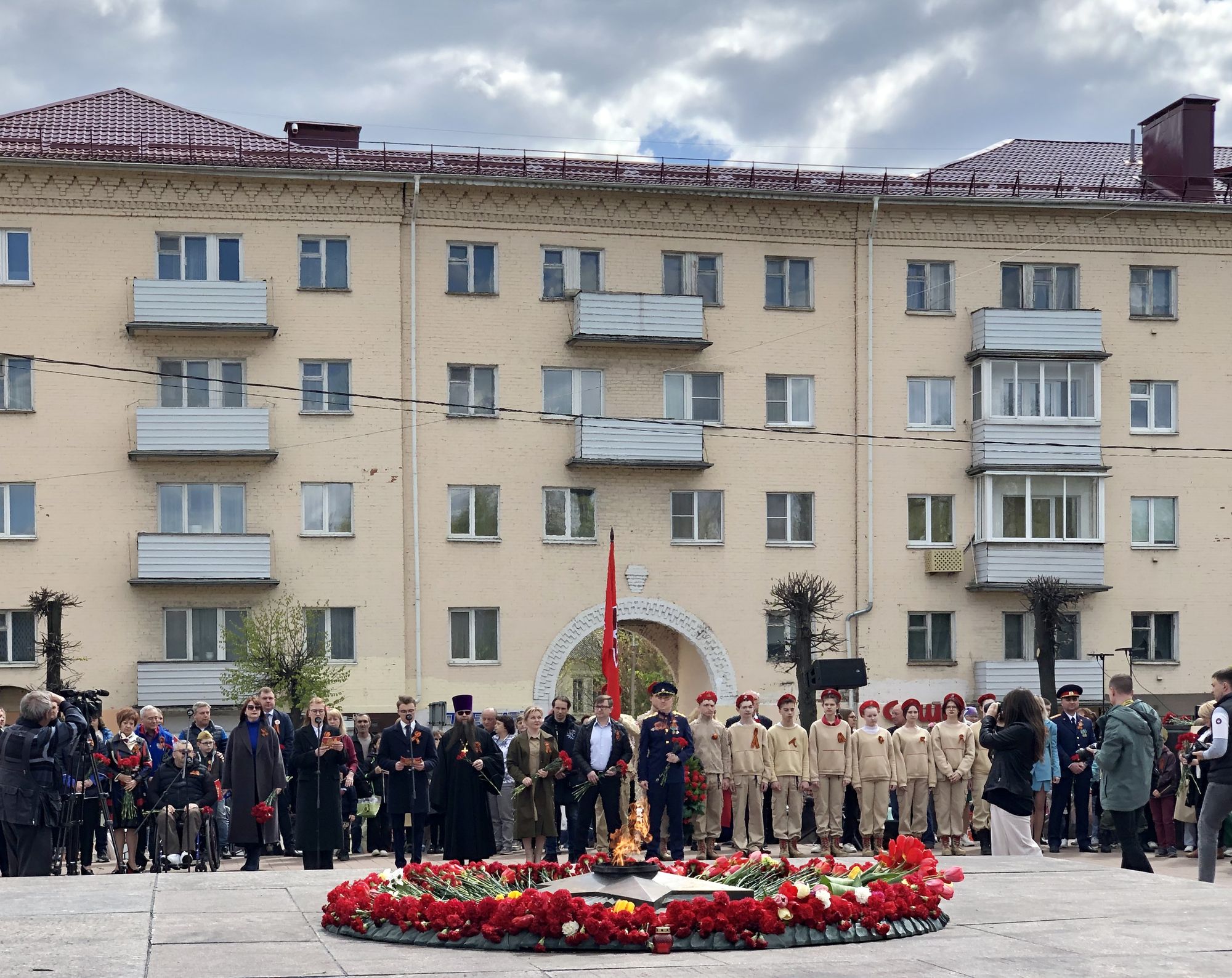 После завершения торжественной части и возложения цветов на Мемориале воинской славы возле Скорбященского храма у братской могилы воинов пасхальным чином была отслужена панихида по погибшим в годы Великой Отечественной войны, которую возглавил настоятель храма Всех Скорбящих Радость протоиерей Борис Балашов.
